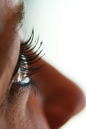 Profile shot of a girl with heavy mascara applied on her eyelashes
