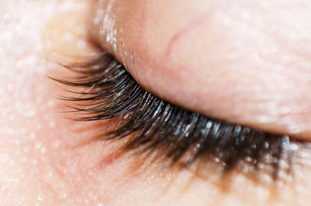 Female Eye with Extreme Long False Eyelashes. Eyelash Extensions. Makeup, Cosmetics, Beauty. Close up, Macro