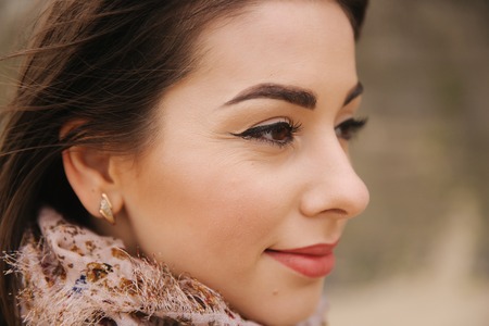 Portrait of a beautiful woman with voluminous eyelashes and smooth skin...