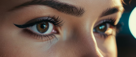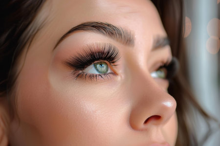 Dramatic shot of a beautiful woman eyes looking at camera long artificial lashes