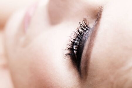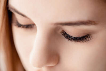 Beautiful Long Lashes. Treatment of Eyelash Extension. Woman Eyes with Artificial False Eyelashes.