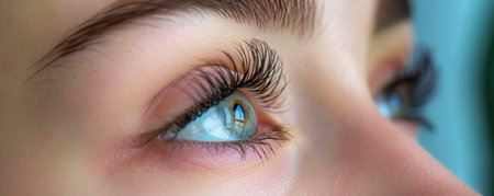 Eyelash extension procedure microblading for eyes woman in beauty salon