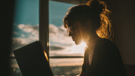 Professional female freelancer working on her project while typing on laptop computer in modern workplace