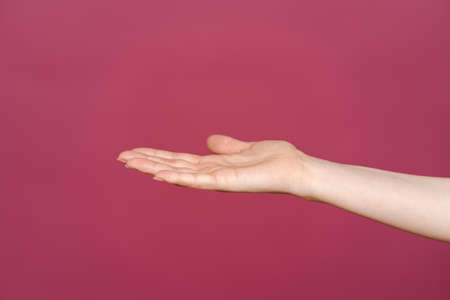 close up open empty female palm. Concept of requirement and request