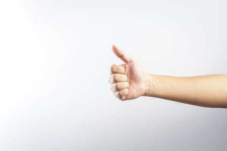 Thumb up hand sign on white background