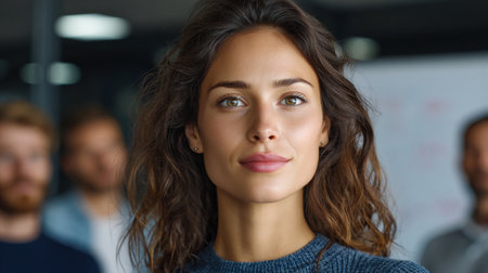 Professional close-up portrait of a young Finnish female manager in a modern office setting