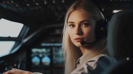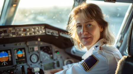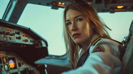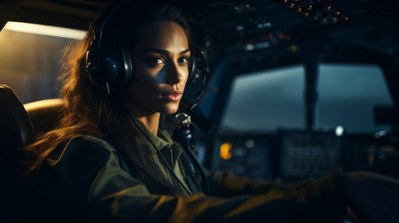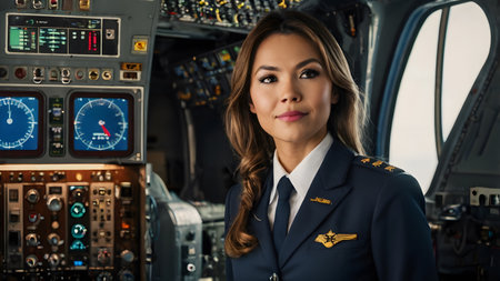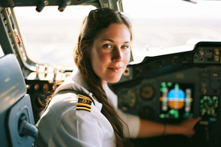 Confident Female Pilot at Controls, AI Generated