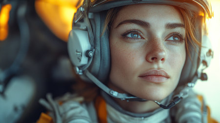 Close-up portrait of a beautiful girl in a spacesuit.
