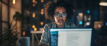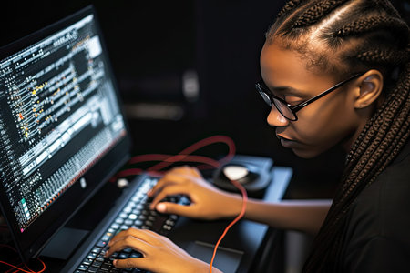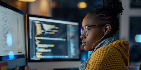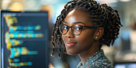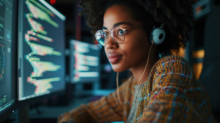 Afro woman programmer Dedicated to software development