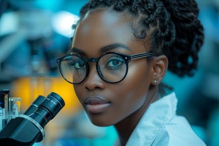 Young examining samples in a lab, symbolizing medical research and discovery.