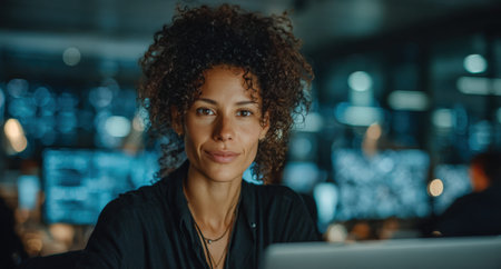 Portrait, business and woman in office at night with ambition, about us and financial career. Female person, smile and arms crossed for asset management, finance experience and deadline of investment