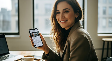 Female manager working in office with mobile phone