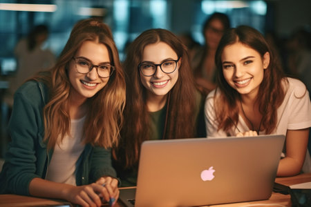 Generative AI : Group of students or teenagers with laptop and tablet pc computers at home having fun