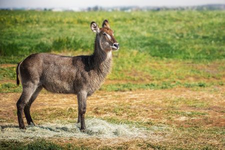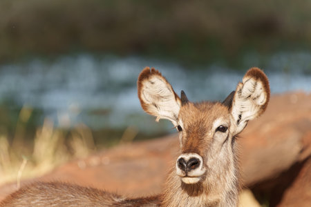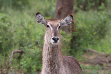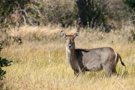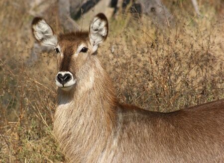 Female waterbuck antelope (Kobus ellipsiprymnus) in natural habitat, South Africa