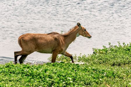 Africa, Kenya. Safari - tour to the famous Kenyan reserve Masai Mara. Wild animals in natural habitat. Gorgeous female water goat. The concept of exotic, ecological, extreme and phototourism