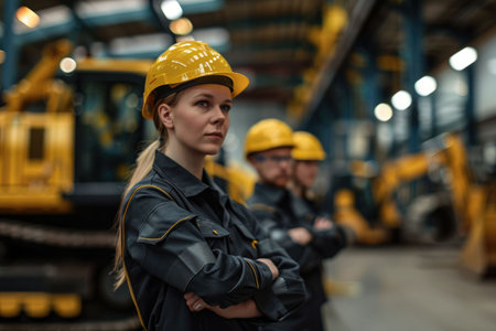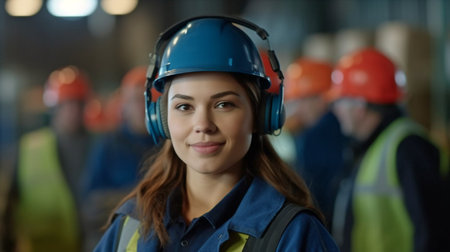 Skilled woman engineer in protective gear inside a manufacturing plant