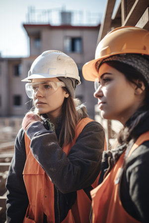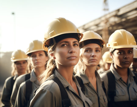 Group diverse female construction workers. Professional industrial architecture women engineers. Generate ai