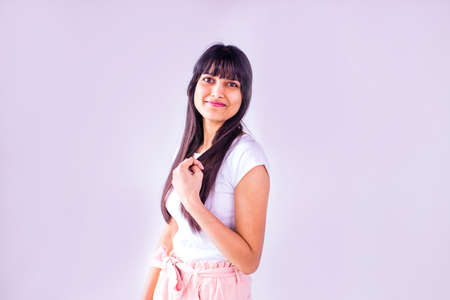 Pretty young female bright makeup pink hair glamor monochrome shot unaltered