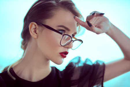 Elegant business lady in glasses. Beauty, fashion. Optics and eyewear style.