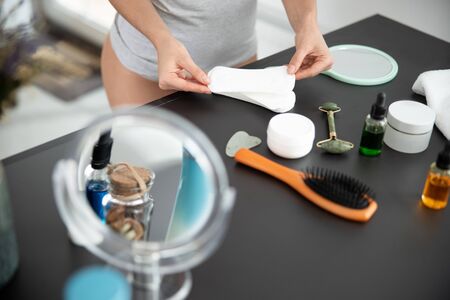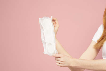 woman menstrual products_taking out the sanitary pad from pouch