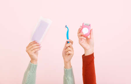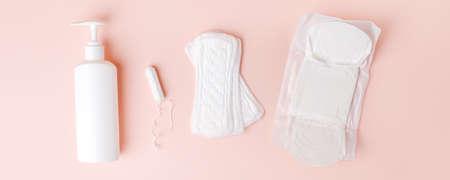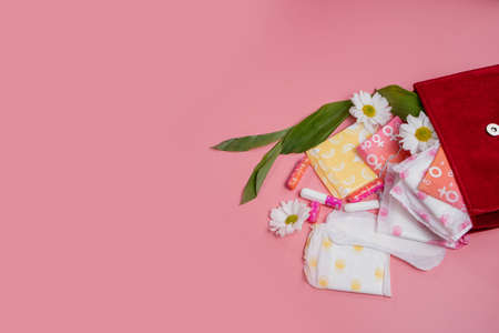 Feminine hygiene accessories. Concept of feminine hygiene during menstruation.
