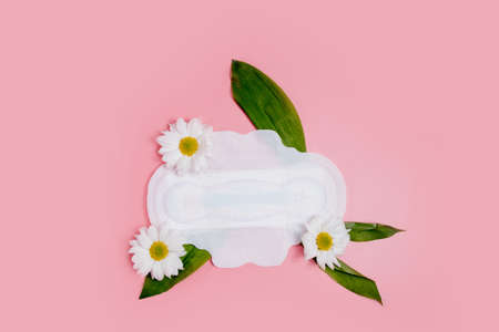 Floral clean sanitary pad, hygiene concept, women products, menstrual pads.