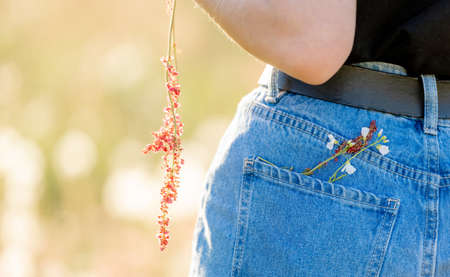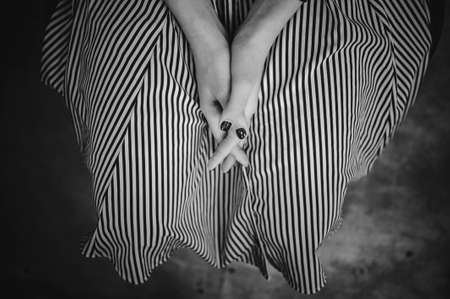 Close up of female hand touching her hip or waist feel pain from hip or waist or sexy woman has diarrhea.