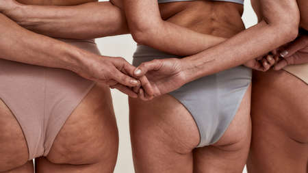 Young diverse group of women wearing underwear. Concept image representing diversity and self acceptance