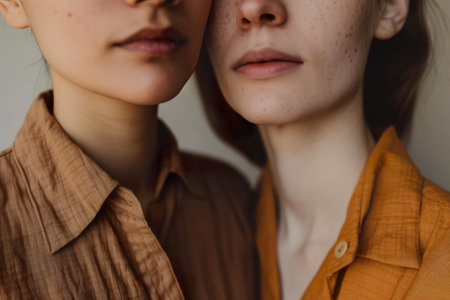Close Up Portrait of Diverse Couple in Earthy Tones.