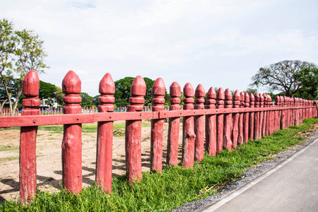 Wooden fence barrier at farm grounds for cattle and territory protection