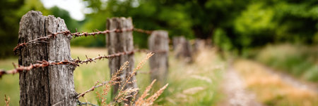 With blurry barbed wire rod fence. Created with Generative AI technology