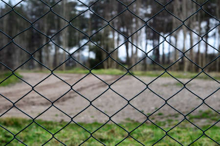 Close-up shot of metal chain-link fence lines with blurred edges, representing strength and separation in urban setting