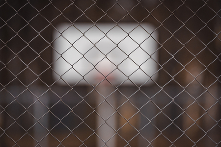 Rusty Chain Link Fence of steel netting on blur background. wired metal fence in vintage tone.