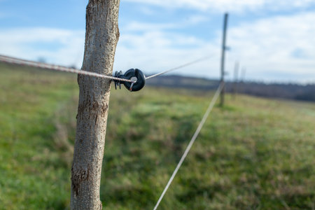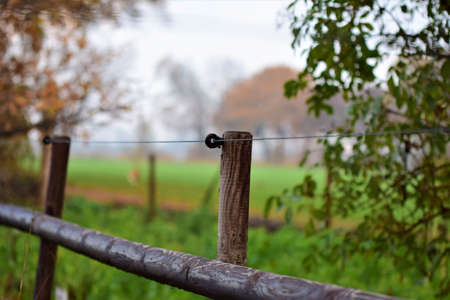 Electric fence on wooden pole used to keep cattle in one place