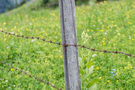 Rusty barbed wire at a cow paddock, Austria