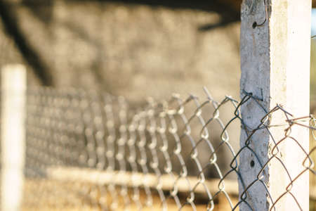 Chain link fence at sunset with sun rays. Abstract background for design.