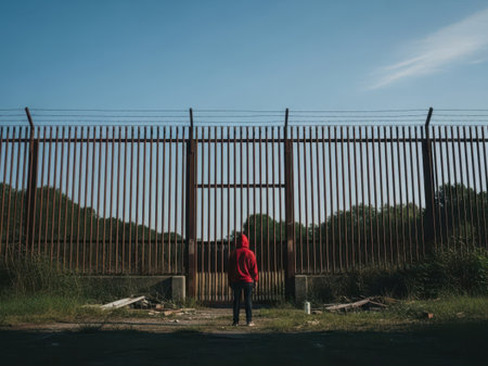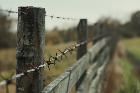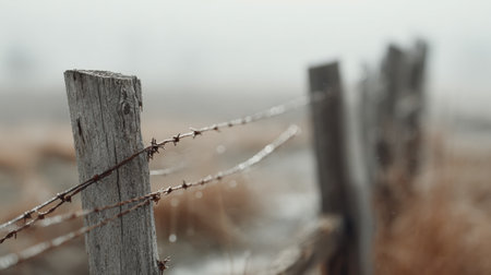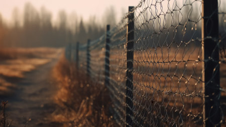 With blurry barbed wire rod fence. Created with Generative AI technology