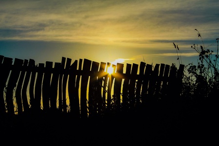 A moody shot of a fence with an out of focus background during the sunset, inspiring with copy space