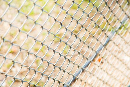 Chain link fence, steel metal industrial pattern in court, selective focus
