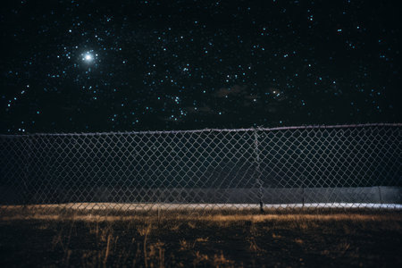 Mysterious Night: A Cloaked Perspective Through the Black Link Wire Fence --ar 3:2