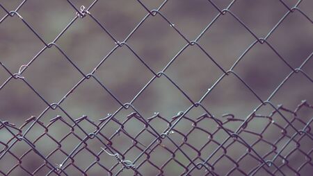 Close up Solid Metallic Wire Mesh Chain link Fence in Vintage Style Steel. Selective focus wire mesh fence