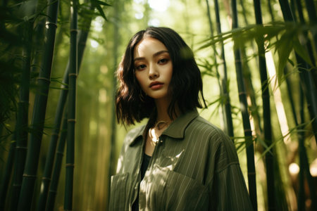 Portrait of a young beautiful Asian woman in a bamboo forest.
