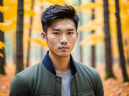 The confident smile of a mature man, the charming demeanor of an Asian man