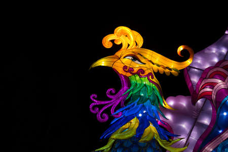 ALBUQUERQUE, NEW MEXICO, USA - NOVEMBER 29, 2018: Dragon Lights Albuquerque, Silk Phoenix lantern. Silk lanterns a Chinese traditional art celebrates the Chinese New Year. Handcrafted by artisans from Zigong, China