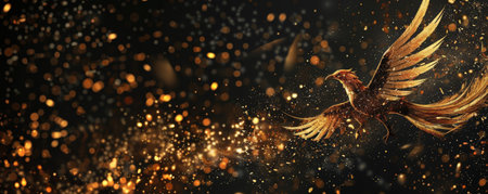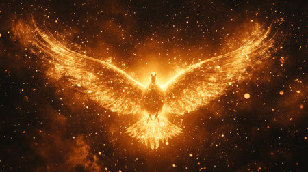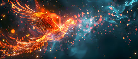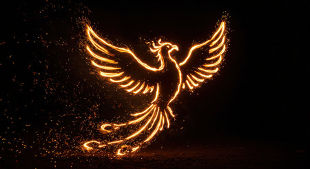 A glowing phoenix created with fiery sparks against a dark background
