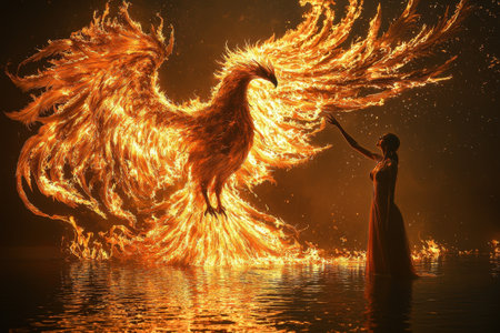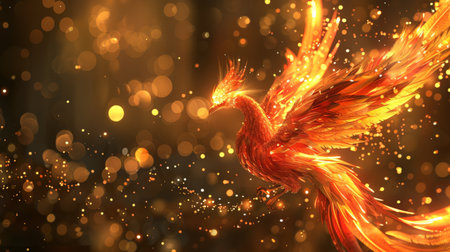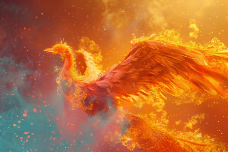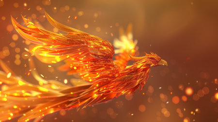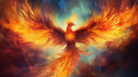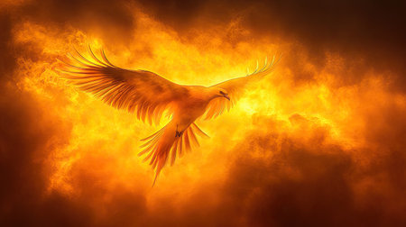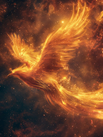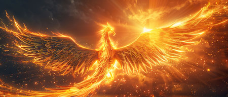A stunning digital art illustration of a phoenix rising in a blaze of flames, symbolizing rebirth and transformation.