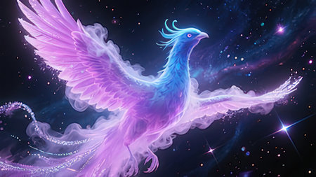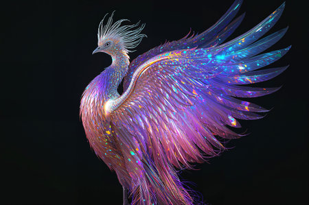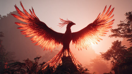Regal phoenix-like bird rising in radiance
