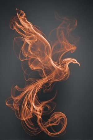 A striking phoenix silhouette crafted from soft, flowing smoke against a charcoal gray backdrop. The wisps curl gracefully, forming a bold and symbolic structure with translucent edges.