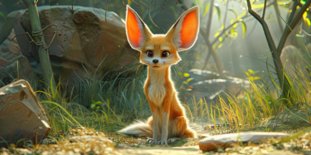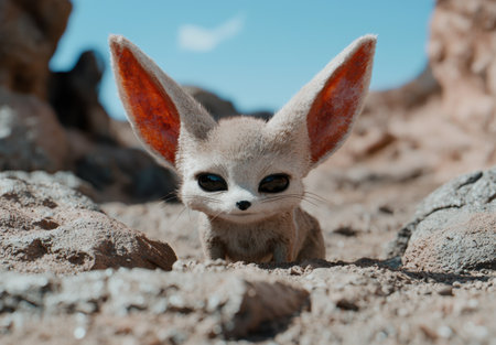 Fennec Fox in its natural habitat, showing its distinctive large ears and desert-adapted charm