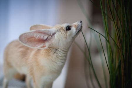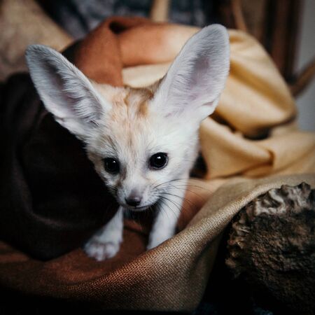 Fennec fox with big ears Vulpes zerda . Wildlife animal.